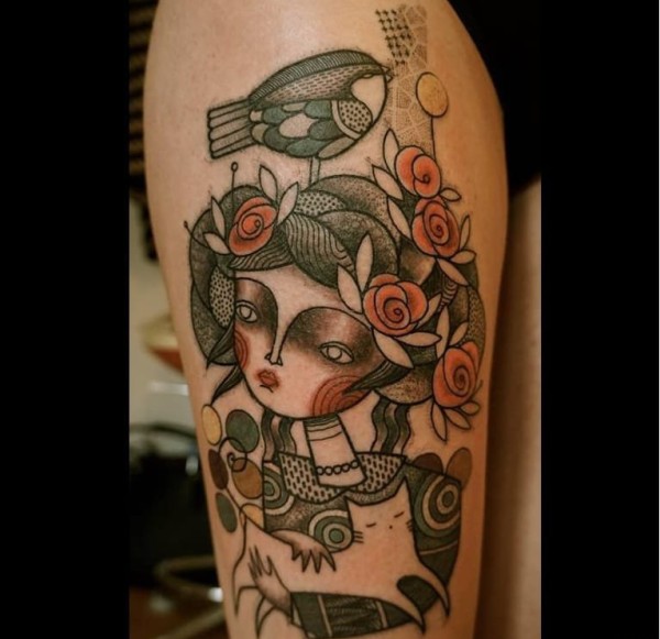 传统花腿纹身--18张传统风格的大花腿纹身图案作品