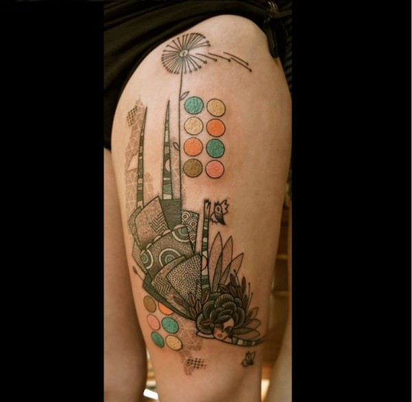 大腿上抽象的仙女纹身图案