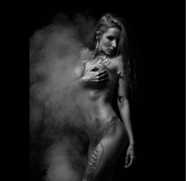 性感的纹身摄影,欧美纹身女生黑暗中的性感与美的演绎