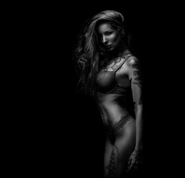 性感的纹身摄影,欧美纹身女生黑暗中的性感与美的演绎