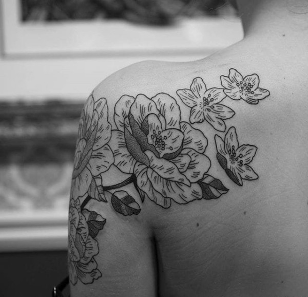 超精致的黑色细线条纹身图案来自伊丽莎白瓦里丝