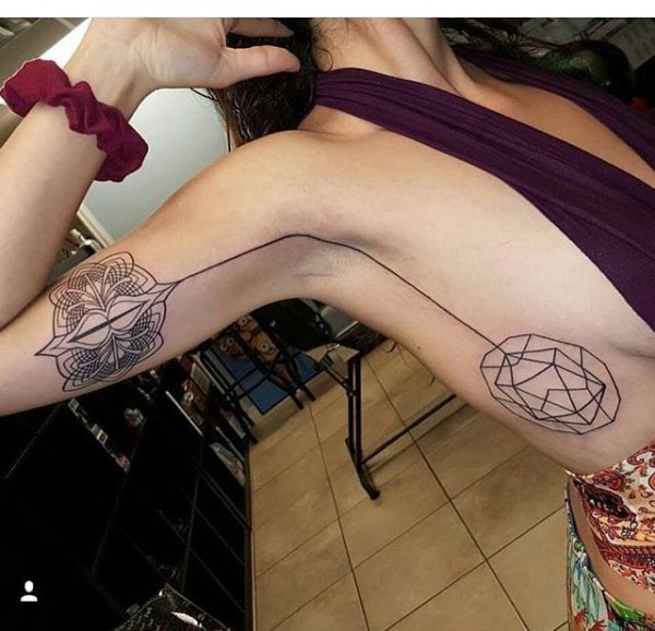 花臂纹身女生侧肋上传统风格曼陀罗花图案纹身