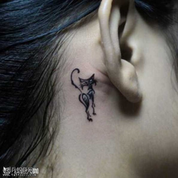 耳部猫咪纹身图案