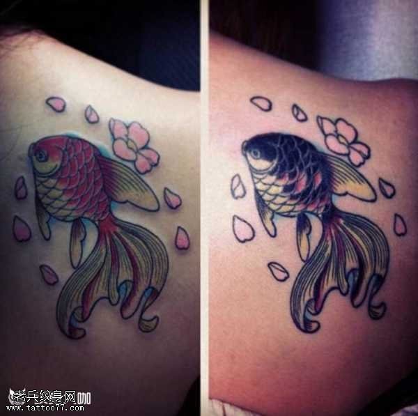 女生肩花纹身_15张女性双肩对称的肩花纹身图案作品图片