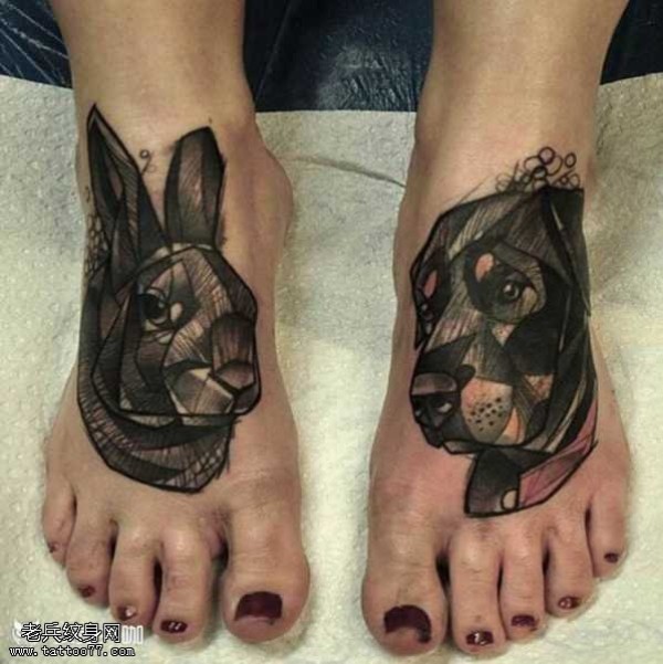 脚部钻兔子纹身图案