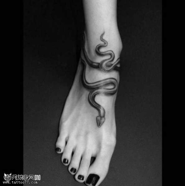 脚部蛇纹身图案