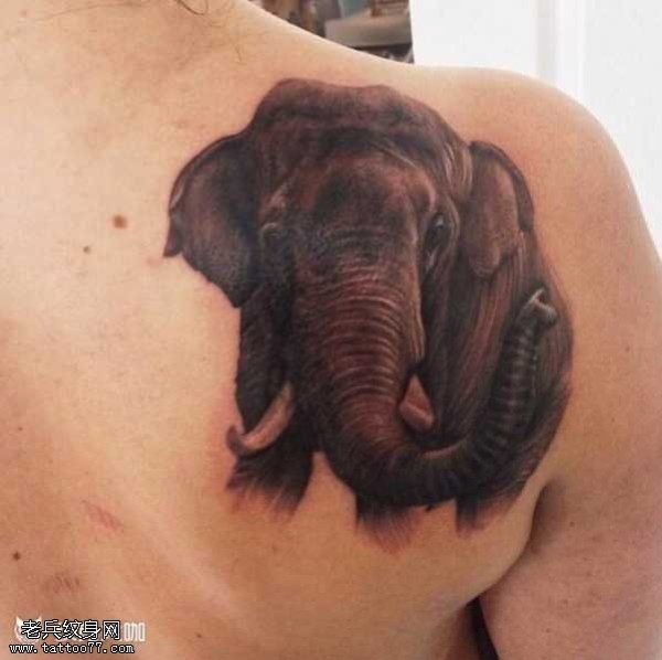 肩部大象纹身图案