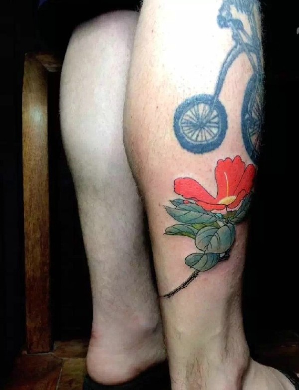 传统鲤鱼花小腿纹身_腿部纹身图案大全_纹身图吧