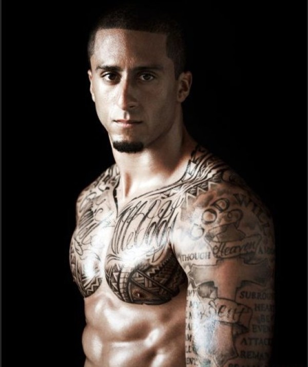 美国旧金山橄榄球队队员Kaepernick帅气的大面积纹身图案
