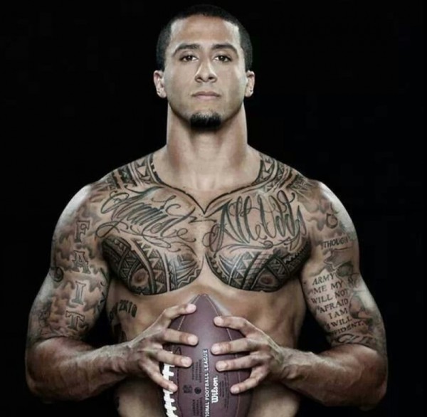 美国旧金山橄榄球队队员Kaepernick帅气的大面积纹身图案