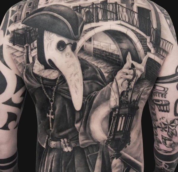 哥特派花臂正义天平雕像纹身图案