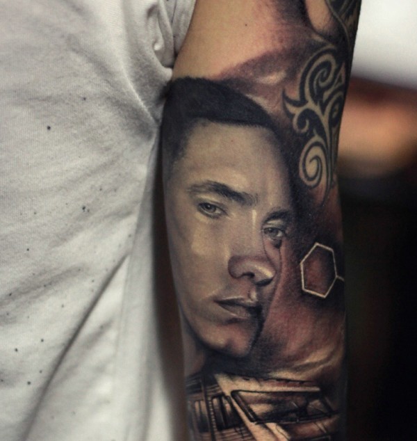 手臂帅气小鲜肉肖像纹身图案