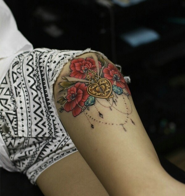 清新花朵腿部纹身图案图片_植物纹身图案大全_纹身图吧