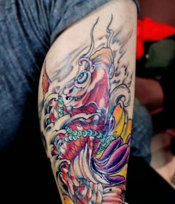 传统鲤鱼花小腿纹身_腿部纹身图案大全_纹身图吧