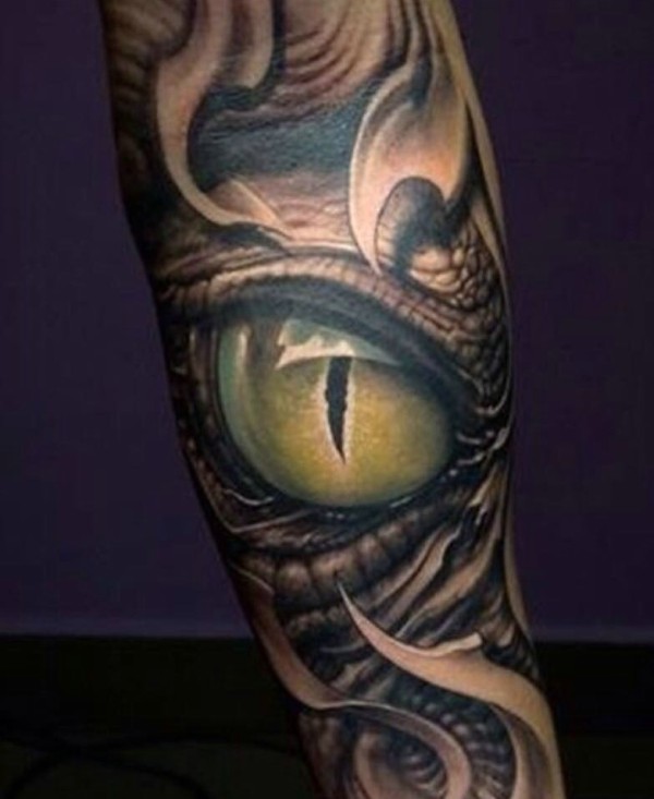 花臂3d眼球纹身图案很逼真
