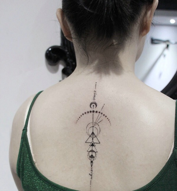 几种几何图案拼接而成的后背纹身图案