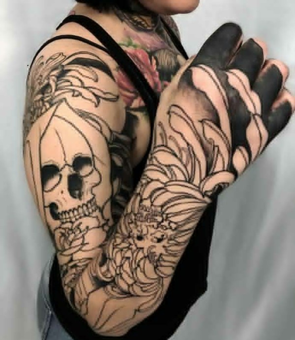 25款男性黑色手臂线条纹身点刺技巧半甲纹身图案