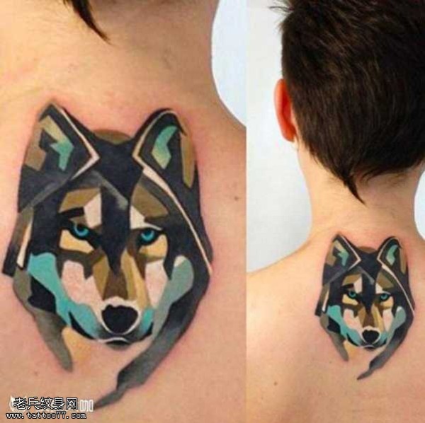 脖子钻狼纹身图案