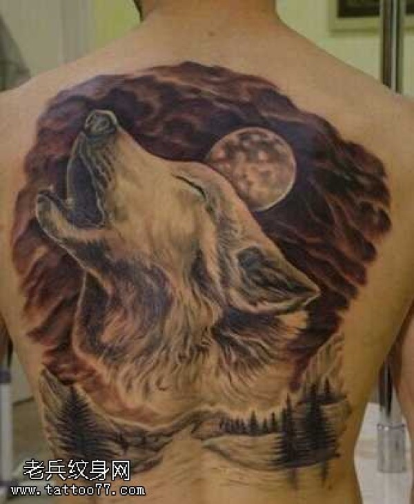 背部狼吼纹身图案