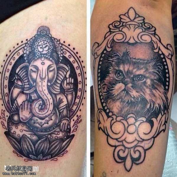 肩部象猫纹身图案