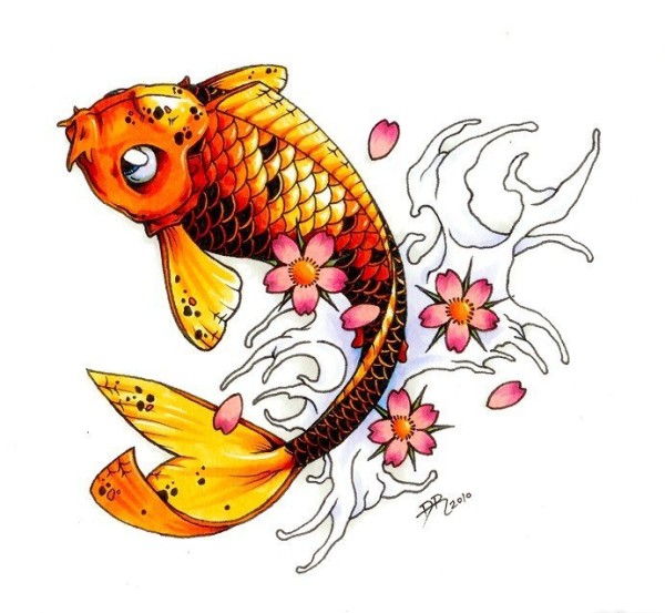 漂亮的彩色鲤鱼纹身图案手稿