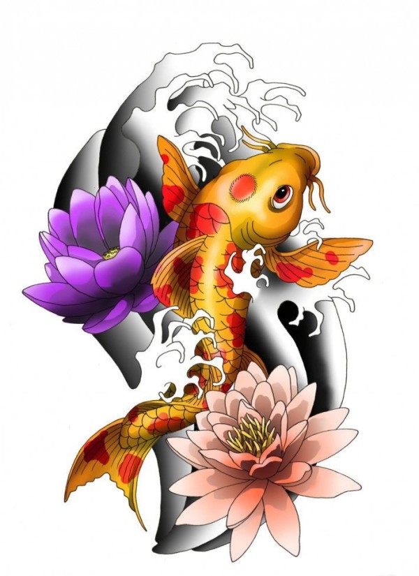 漂亮的彩色鲤鱼纹身图案手稿