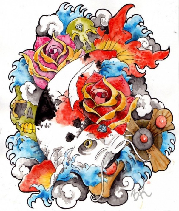 双鱼座纹身手稿_45张十二星座之双鱼手稿纹身图案
