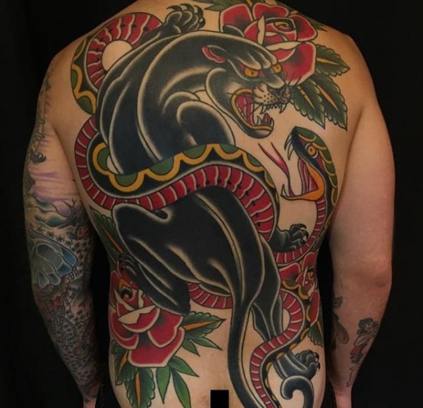 八款男士大胆的满背大面积彩色纹身图案