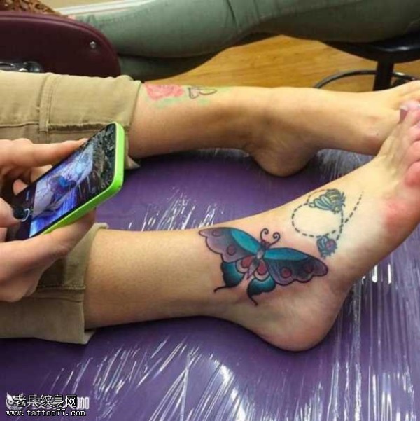脚部蝴蝶纹身图案