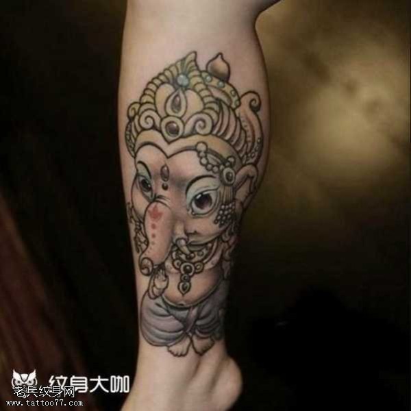 小腿上一款大象纹身图案_腿部纹身图案大全_纹身图吧