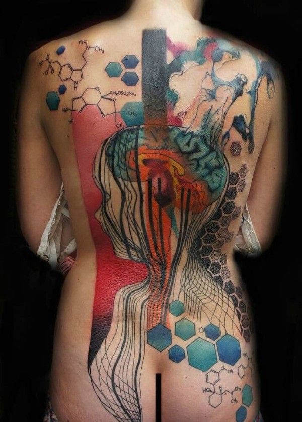 一套几何点刺线条水墨纹身完美结合