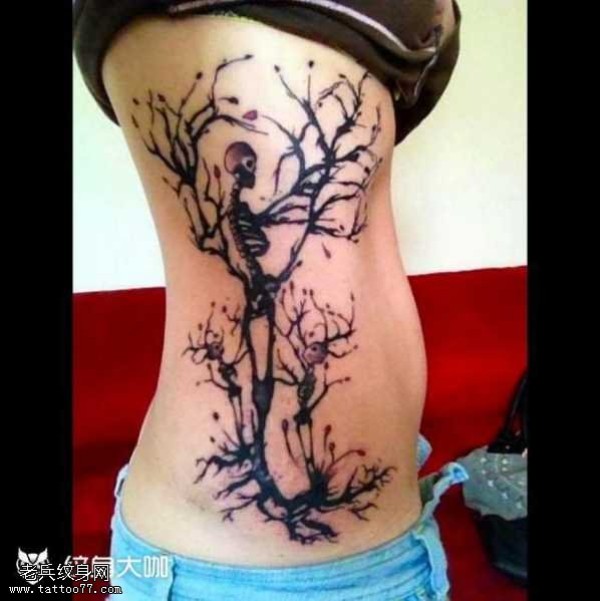 分享一款腰部时尚性感的蝶恋花纹身图案_腰部纹身图案大全_纹身图吧