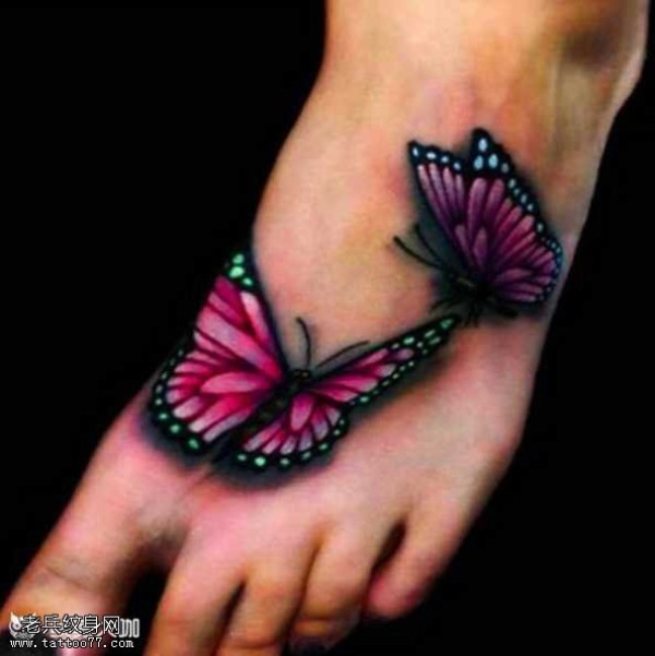 脚部蝴蝶纹身图案