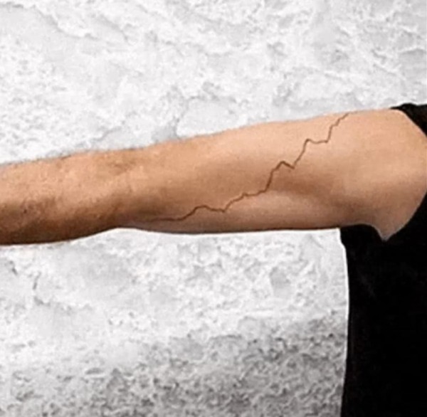 男子右手臂上的简单线条纹身图案