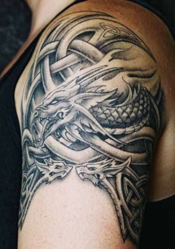 龙纹身手稿_一组老传统黑灰龙手稿纹身图案