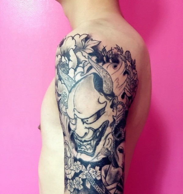能面万媚纹身手稿_52张日式能剧面具纹身手稿图案素材欣赏