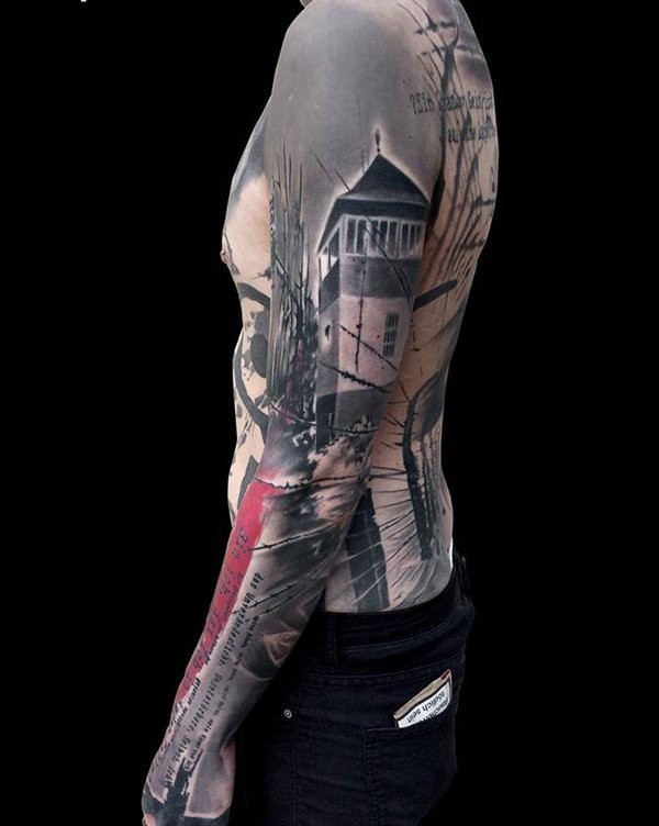 花臂抽象几何图形骷髅头眼睛纹身图案