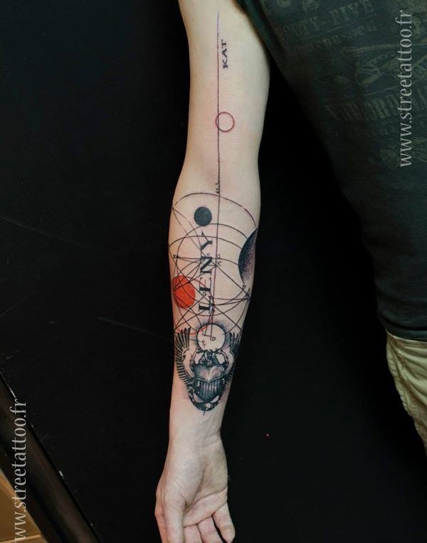 花臂抽象几何图形骷髅头眼睛纹身图案