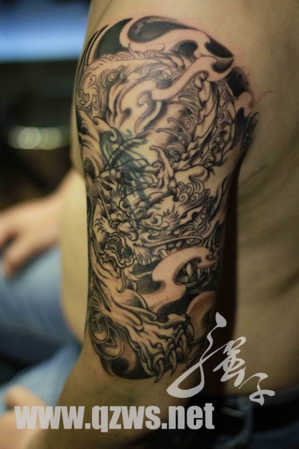 龙纹身手稿_一组老传统黑灰龙手稿纹身图案