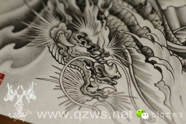 龙纹身手稿_一组老传统黑灰龙手稿纹身图案