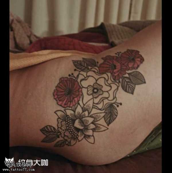 腰部玫瑰纹身图案