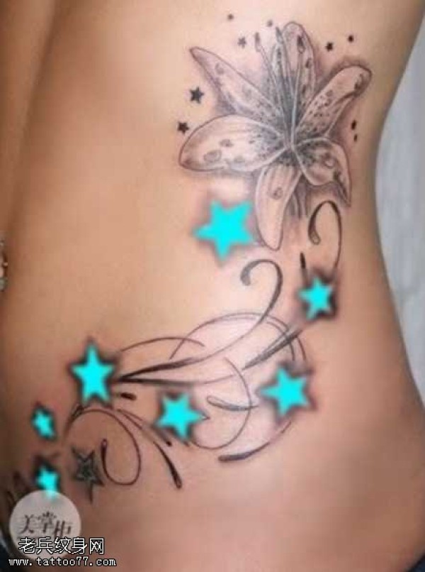 女性腰部莲花花纹刺青_腰部纹身图案大全_纹身图吧
