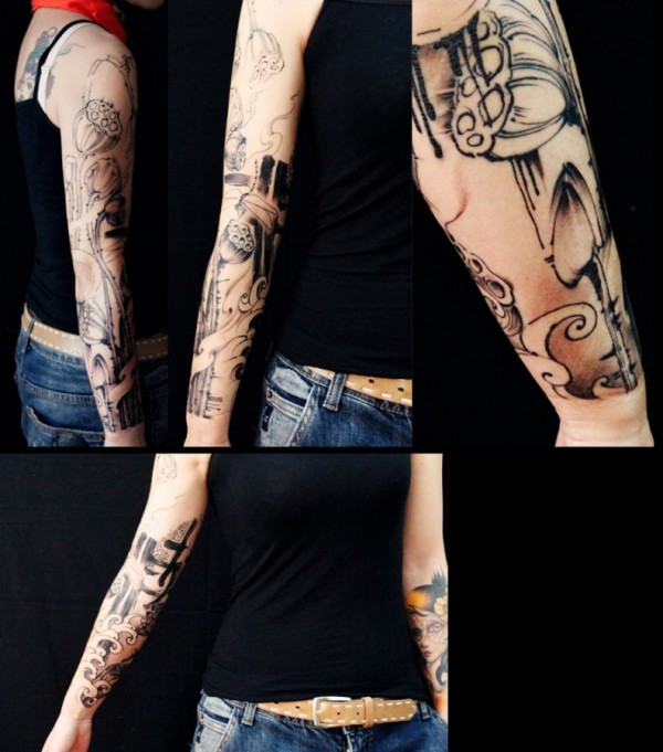 清新淡雅 北京newtattoo纹身店陈洁山水水墨纹身 (一)