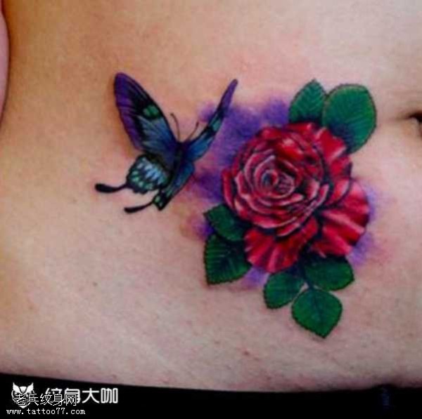 分享一款腰部时尚性感的蝶恋花纹身图案_腰部纹身图案大全_纹身图吧
