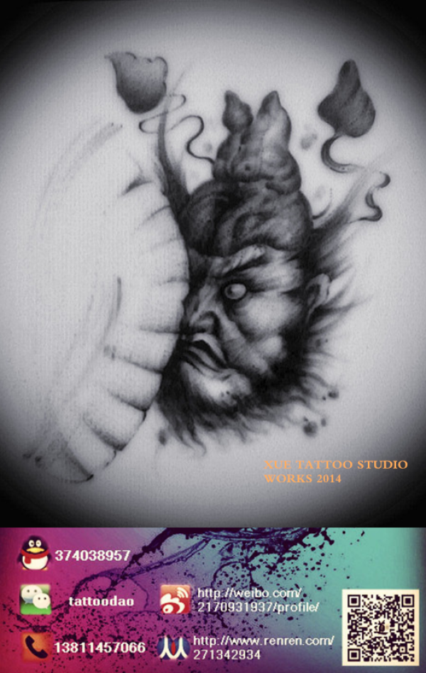 能面万媚纹身手稿_52张日式能剧面具纹身手稿图案素材欣赏