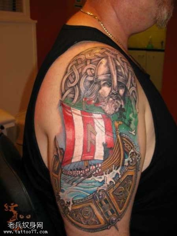 胳膊维京战船纹身图案