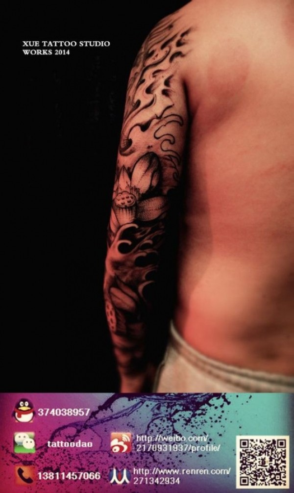 清新淡雅 北京newtattoo纹身店陈洁山水水墨纹身 (一)
