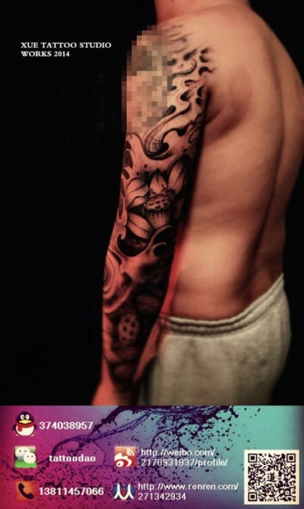 清新淡雅 北京newtattoo纹身店陈洁山水水墨纹身 (一)