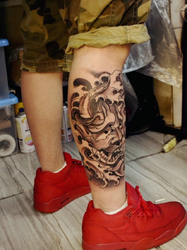 花腿纹身--一组大黑腿纹身图案作品欣赏