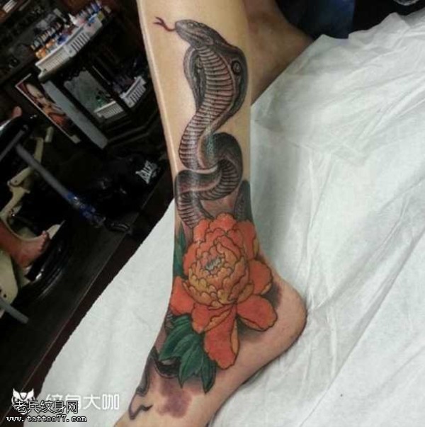 传统鲤鱼花小腿纹身_腿部纹身图案大全_纹身图吧